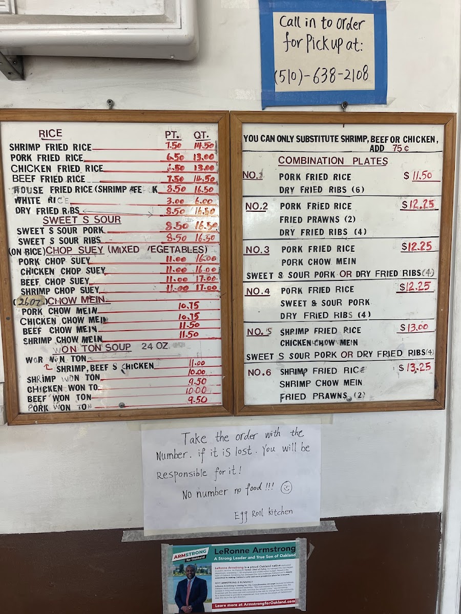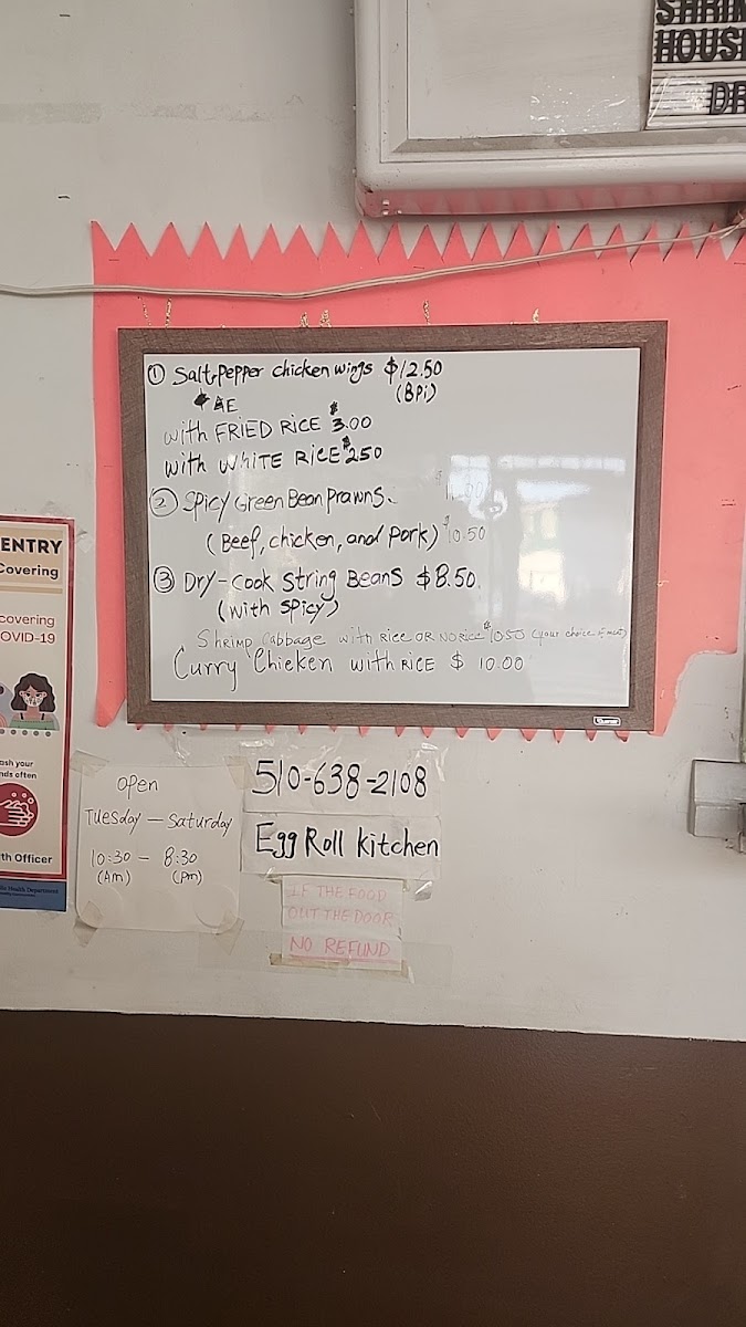 Egg Roll Kitchen offers a straightforward, comforting menu centered on classic Chinese dishes served in a casual, no-fuss setting. The focus is on familiar favorites that pair well with the welcoming, old-school vibe of this family-owned East Oakland spot.